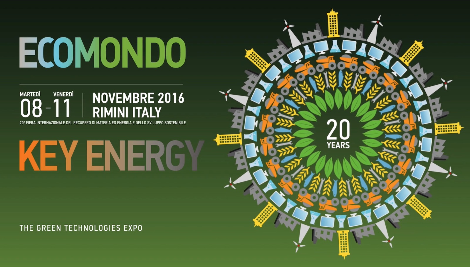 Ecomondo e Key Energy tornano a Rimini, da martedì 8 a venerdì 11 novembre 2016, e si presentano come la vetrina più completa nell´area euro mediterranea sulle soluzioni tecnologiche più avanzate e sostenibili per la corretta gestione e valorizzazione dei settori riguardanti rifiuti, ciclo idrico integrato, aria, bio-based industry, energia.