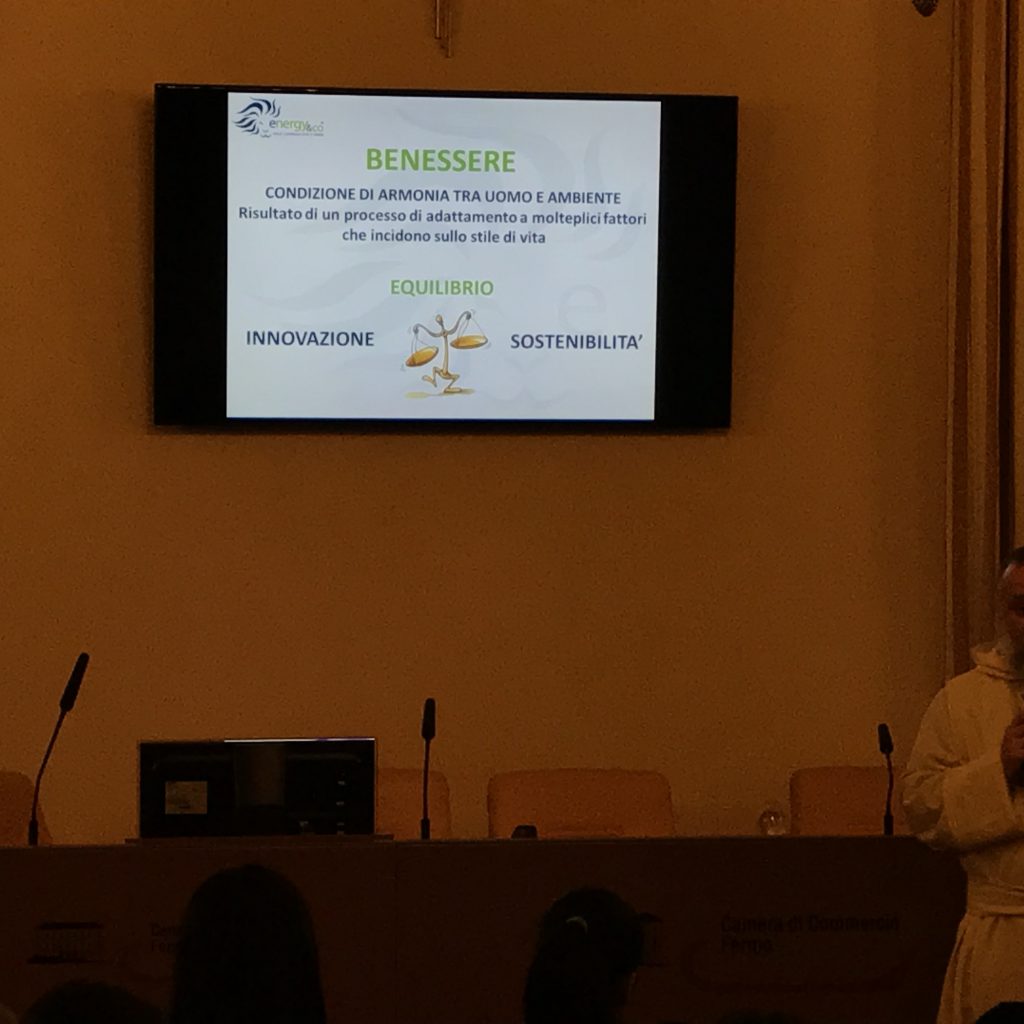 In particolare sabato scorso, presso la sala convegni della camera di commercio – Palazzo Azzolino, con “Illuminamente” si è discusso di energia e sostenibilità, con la Dott.ssa Eleonora Gasparrini Amministratore Delegato Energy&Co Srl, società di servizi da anni impegnata nella gestione e razionalizzazione delle risorse energetiche nelle imprese e con Padre Natale Brescianini, Monaco Benedettino con licenza di esplorare il campo della formazione aziendale e dello sviluppo delle persone.