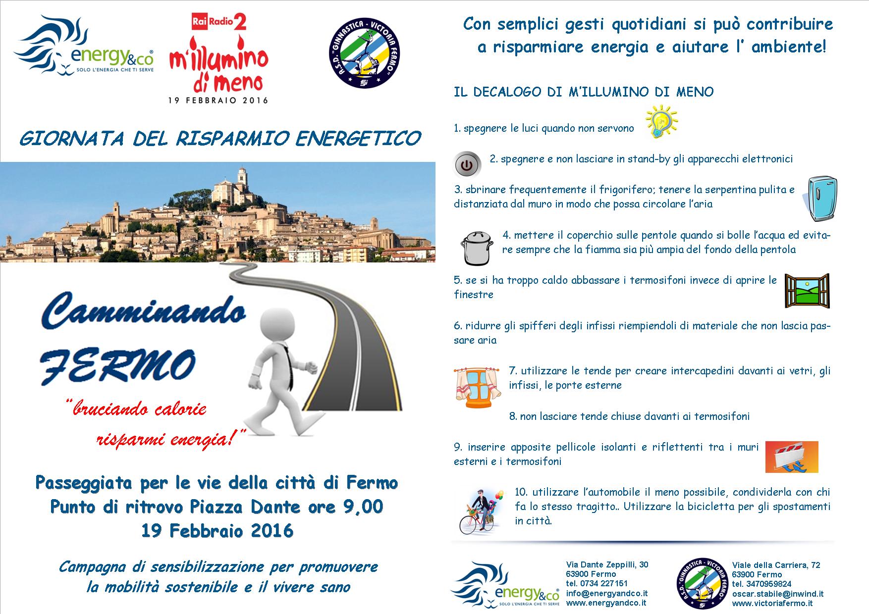 IL 19 FEBBRAIO 2016 ENERGY&CO ADERISCE A M’ILLUMINO DI MENO CON “CAMMINANDO FERMO – BRUCIANDO CALORIE RISPARMI ENERGIA!” PASSEGGIATA PER LE VIE DELLA CITTA’ DI FERMO PER PROMUOVERE LA MOBILITA’ SOSTENIBILE E IL VIVERE SANO.
